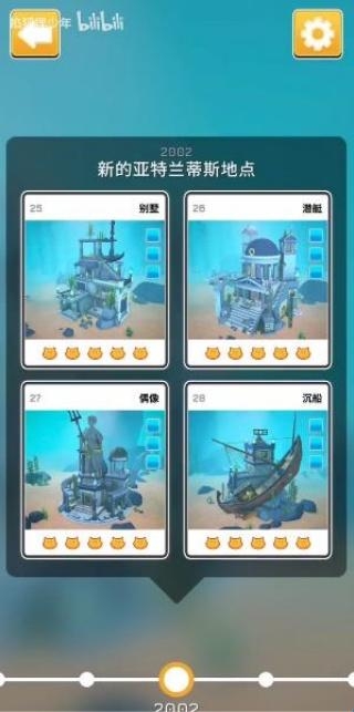 1、在 “新的亚特兰蒂斯地点”中,依次解锁别墅、潜艇、偶像、沉船等不同场景。