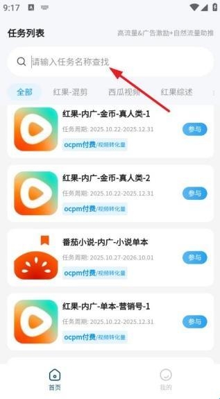 4、还可以通过搜索的方式去查找任务,输入任务名称进行查找。