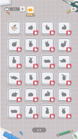 2、连连看模式:玩家需要找到被分开的兔兔碎片,将其合并在一起进行消除即可。
