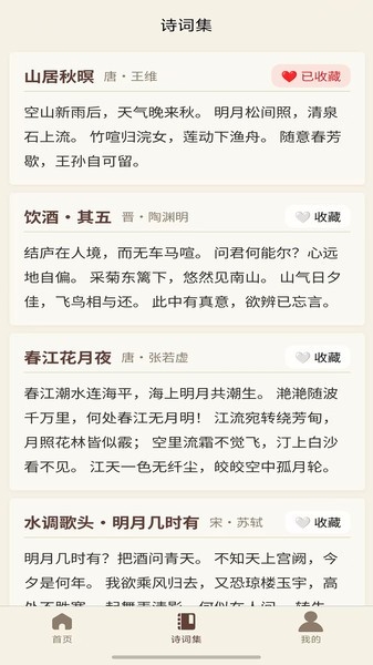 2、用户可创建个性化收藏夹及学习清单,自由整理诗词内容,便于随时复习与知识归纳。
