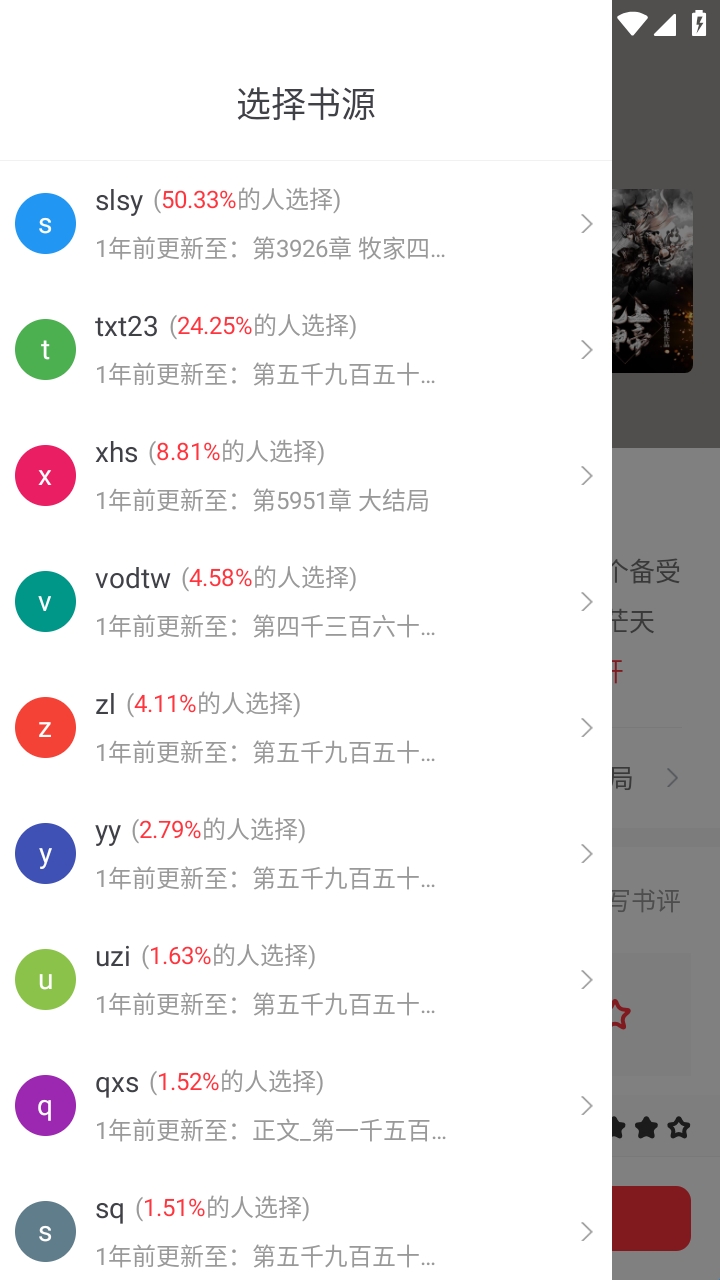 4.接着,屏幕左侧会弹出书源,选择书源进入阅读页面