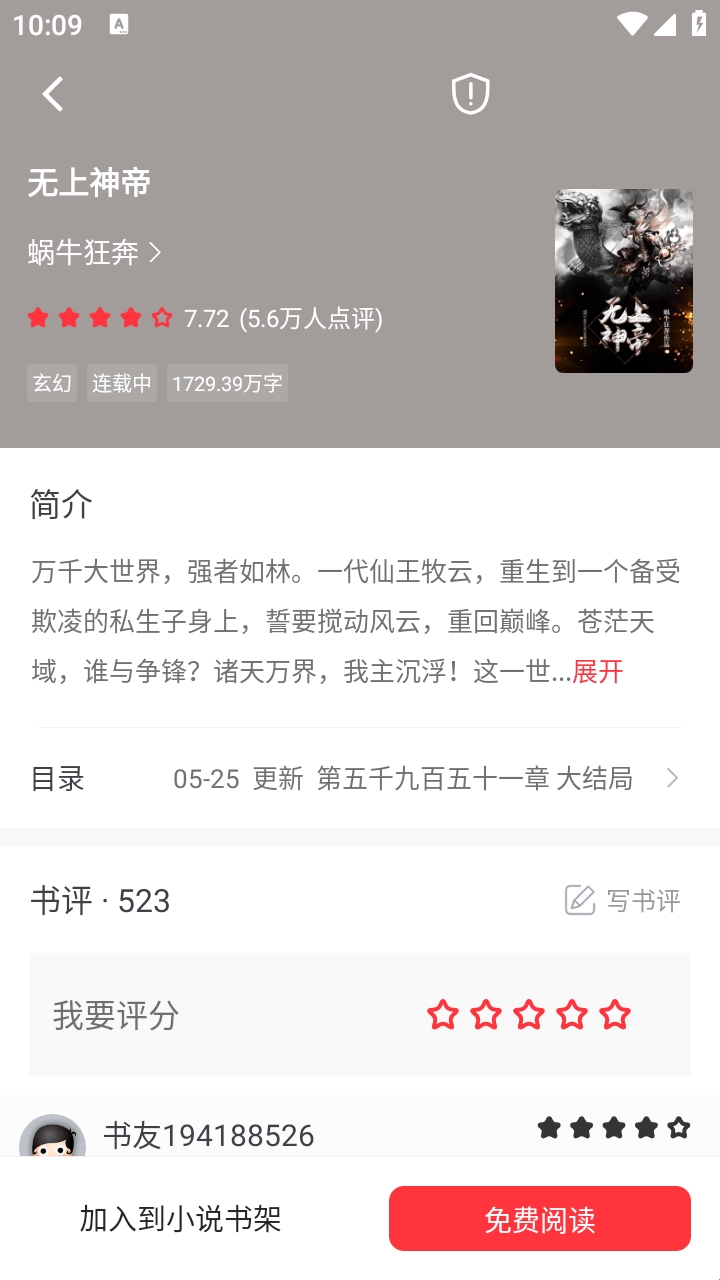 3.找到想看的小说,进入详情页面,点击右下角的免费阅读