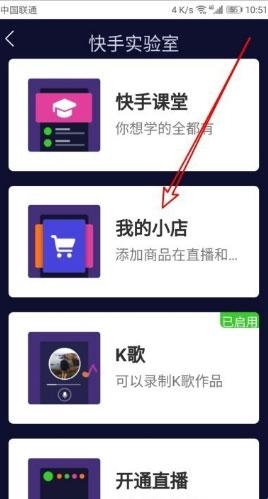 5、这时就会弹出快手实验室的页面,在页面中点击“我的小店”快捷链接。
