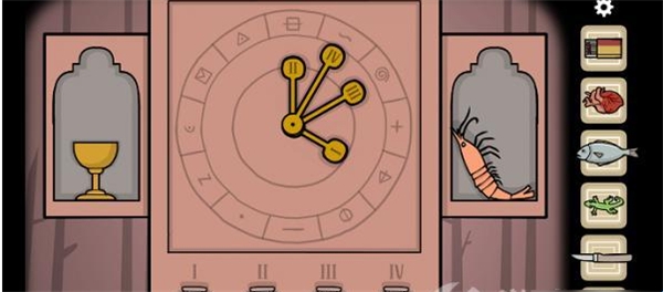 来到时钟这边,时间我们可以调节。但下面的柜子被锁上了,打开需要三角形的钥匙。