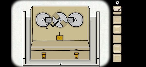 这个密码锁并不复杂,旋转左边的机关180°,右边的机关180°。