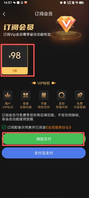 第三步:点击“立即开通”,选择其中一种支付方式支付即可开通