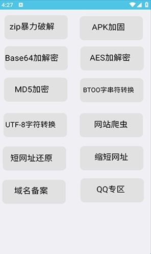 Z工具,一款拥有超多实用工具的合集软件,专为玩机爱好者打造而来。内置zip解锁、apk加固、aes加密、md5加密、网站爬虫、qq专区、域名备案等等,轻松满足用户对于网站和玩机的需求。而且软件还采用多重加密技术,确保用户数据的安全!