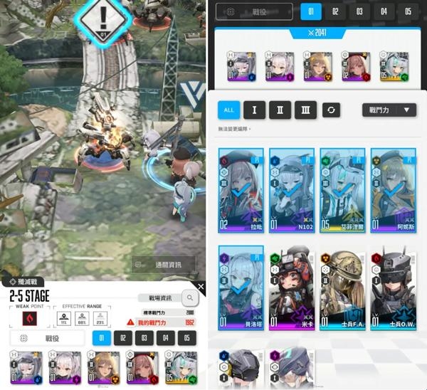 虽然玩法看似简单,但实则在编队上十分具有策略性,玩家需编制5名妮姬上场,在编队上除了针对关卡敌人弱点、适合的射程武器,还要注意角色们是否能组织连锁的爆裂技能,种种都考验着身为指挥官的玩家们战术策略。