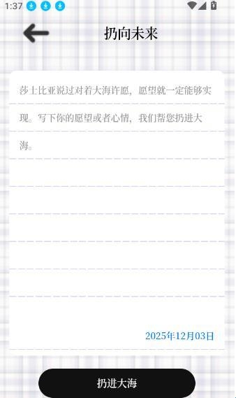 4、然后输入自己写给未来信件的内容,点击“扔向大海”按钮来一键扔出。