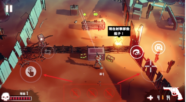 尘烟霓虹是一款充满西部牛仔特色的动作射击游戏。在这里,玩家将来到西部荒漠,并成为一名西部牛仔,由于这里发生了大量的袭击事件,所以玩家需要通过使用强大的热武器,去击杀这些敌人,把他们全部消灭即可过关。游戏具有详细的强化路线,喜欢枪战的朋友,快来下载吧。