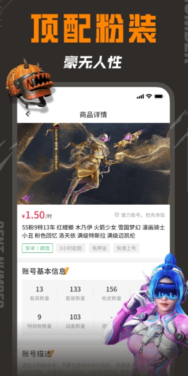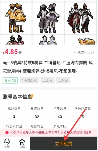 3、租号操作流程简:从浏览筛选到确认租用全程在线完成,上号环节无需手动输入密码,极大缩短操作耗时。