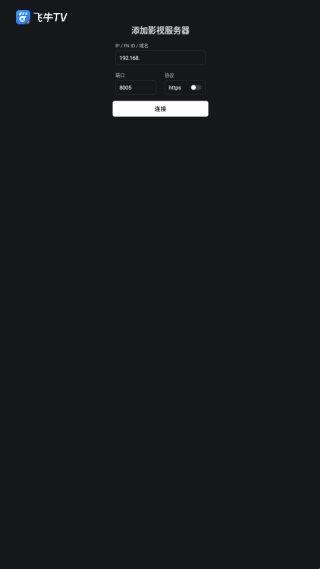 4、输入飞牛影视服务器的地址或y名,然后点击连接即可