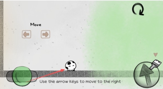 4、当你拾取到关卡里的刷子道具时就可以前往虚线标注的大门附近,刷子会自动绘画出门让玩家进入并通关。
