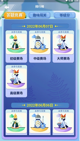 还可以通过“排行榜”看到自己在不同竞赛闯关的排名状况。