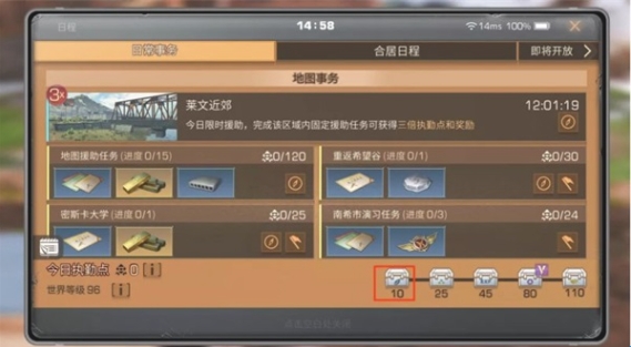 4、日程宝箱:一旦这个幸存者采集等级升级到7,那么就能直接解锁日程完成日常事务,同时也能得到执勤点,累计执勤点将会解锁对应的日常宝箱,解锁即可获得大量熟练度奖励。