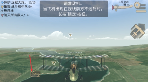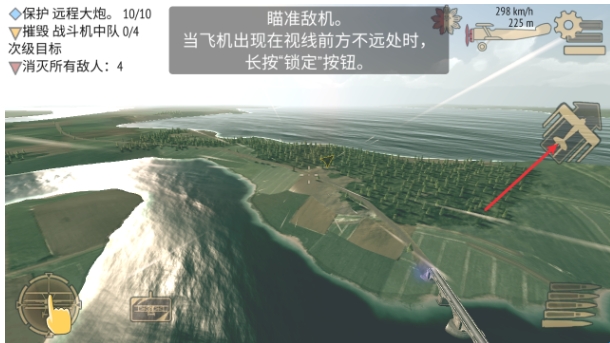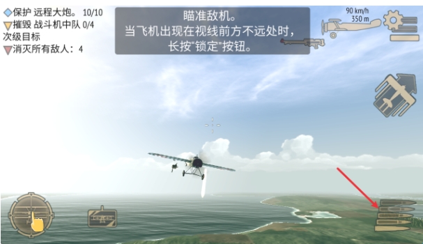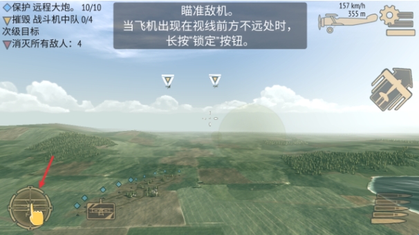 3、进入后拖动屏幕即可控制飞机的飞行方向,左下角可以瞄准敌人。