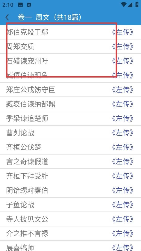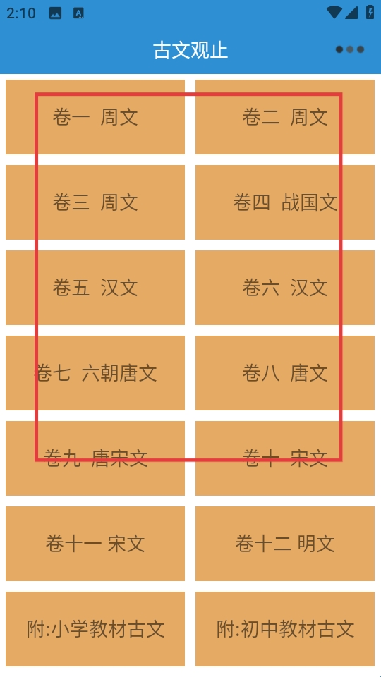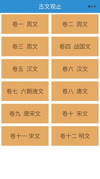 1、在主界面,可选择【卷一周文】至【卷十宋文】等卷目进入对应分类页面。