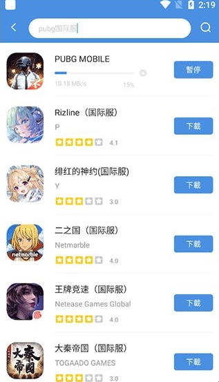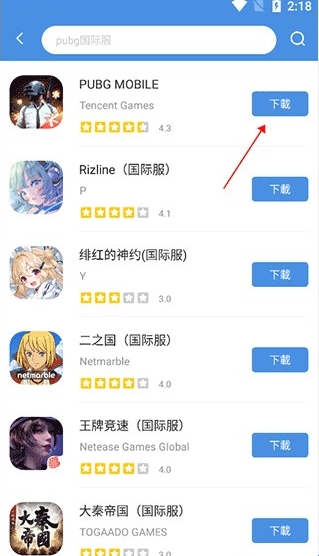 首先玩家可以进入应用的主页中通过顶部搜索框或者直接在页面中手动查找到自己想要安装的游戏,例如pubg国际服