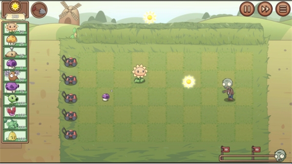 1、经典僵尸敌人掌上重现,发挥不同的植物特性尝试与僵尸进行战斗,巧妙布阵击退僵尸;