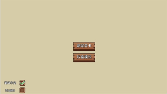 1、打开游戏,一共有两个玩法,一个是测试关卡,另一个则是沙盒模式。