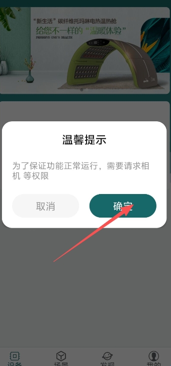 3、连接设备需要授予平台访问相机权限,扫描设备二维码可快速识别连接享受智能控制服务。