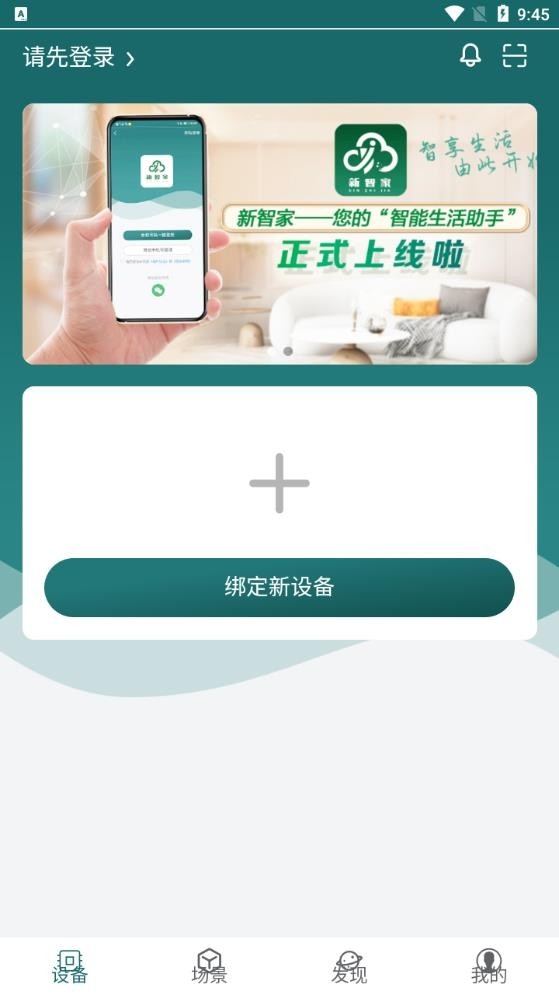 2、进入软件在设备界面点击绑定新设备即可进行后续操作。