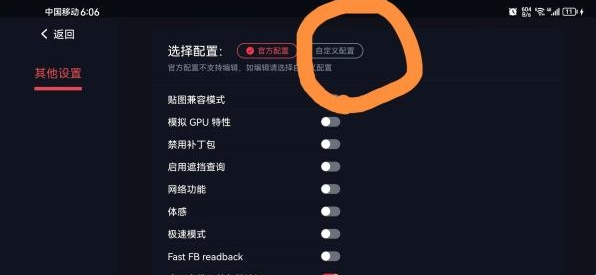 4、蛋蛋模拟器支持自定义配置,官方配置以骁龙888处理器为准,不同处理器可能需要微调设置。一般来说默认能玩而且流畅可以不调,如果卡顿或者闪退,那么需要自定义配置。