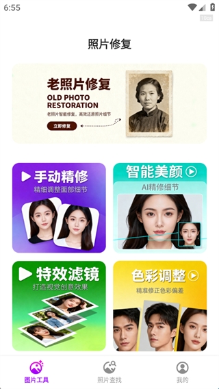 2、包含多种照片处理功能,支持照片修复和美化,满足大家的使用需要;