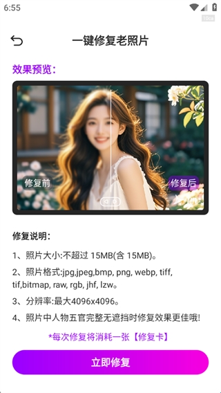 3、能够一键修复老照片,让老旧的照片也能重新焕发光彩;