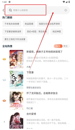 2、然后在搜索框输入想看的小说名称或者关键词,点击搜索即可。