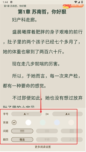 阅读设置,字体的大小甚至是背景都能调节,改善阅读中的所有问题