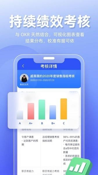 四、考核管理,自定义周期考核,汇报关系的考核流程,工作任务、项目等导入考核项,考核项执行情况进行追踪
