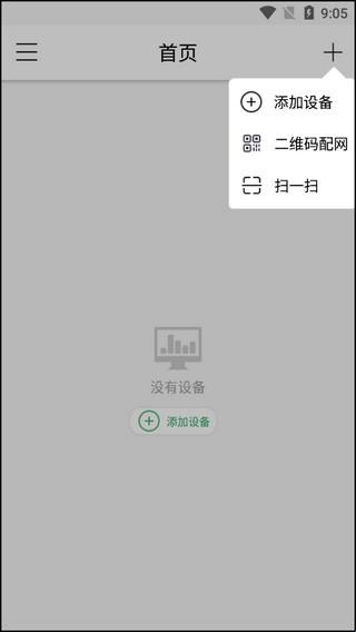2、点击首页右上角的加号,可以看到添加设备的选项,主要就是这个功能;