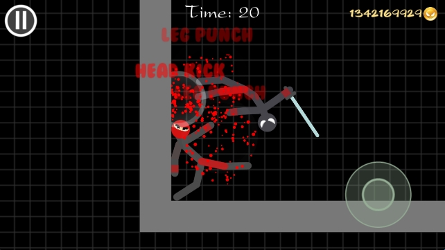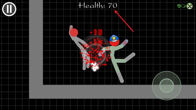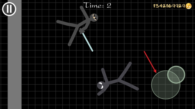 2、进入战斗后,通过右侧的摇杆操控火柴人战斗。