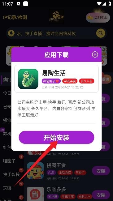 然后任意选择一个自己喜欢的,感兴趣的游戏或者赚米APP,点击开始安装。