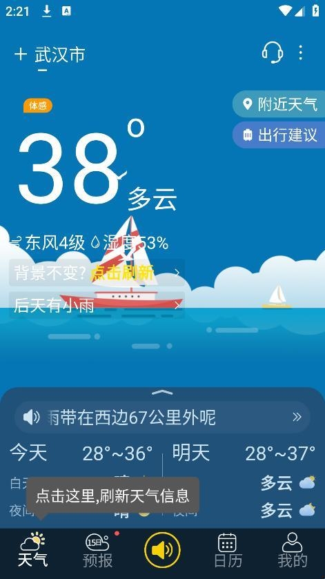 3、实时更新的天气画面,让你不错过任何天气变化细节,出门前查看,对当下的天气了如指掌。