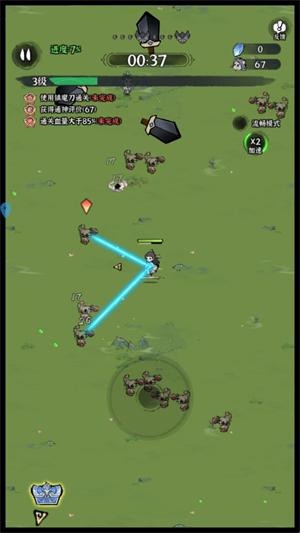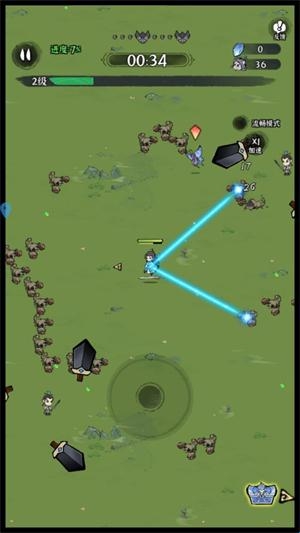 2、试着体验一下消除压力的割草的玩法等。每个关卡都有各种怪物敌人在等着你。