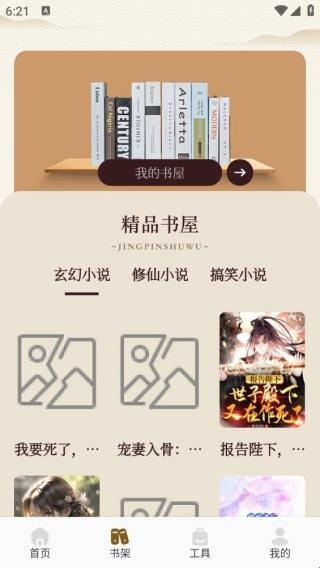 2、点击书架,精品书屋分类多样,可根据个人喜好选择阅读。