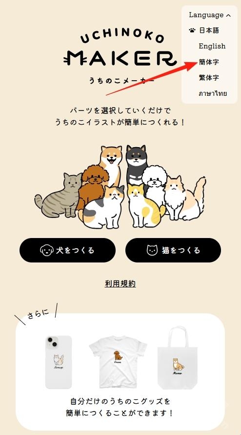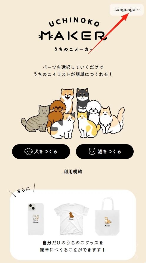 1.打开uchinokmaker官方地址https://uchinoko-maker.jp/,然后点击右上角language