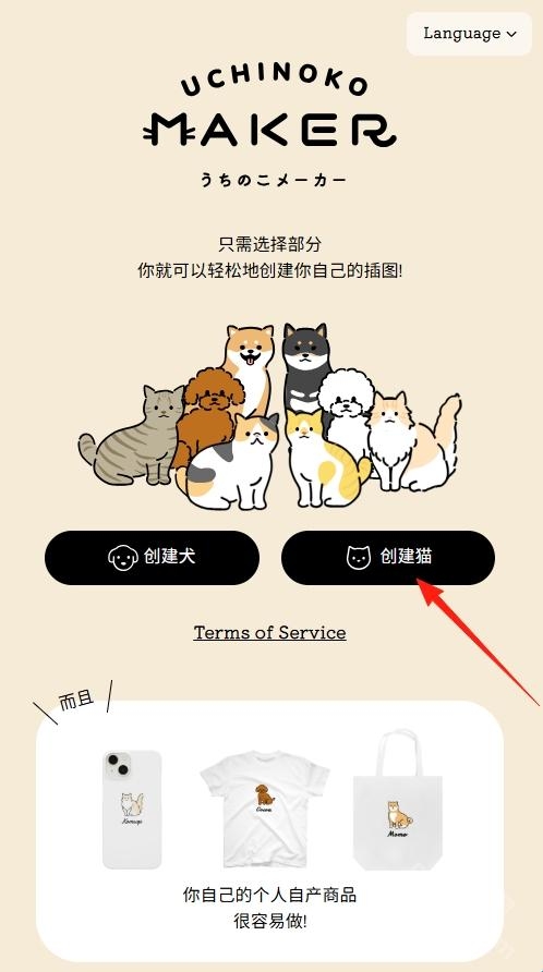 1.选择自己要创建的猫或狗形象,点击对应的创建按钮。