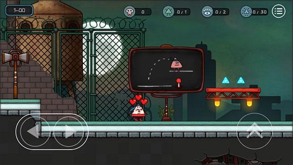 1、小三角大英雄游戏有些地方操作有些技巧性,需要通过长按跳的更远,从而精准的控制落点