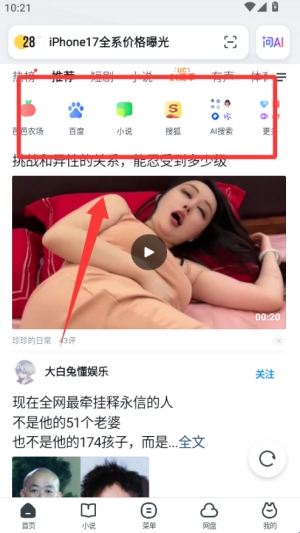1、打开应用点击搜索框,右上角可切换百度或谷歌等引擎,输入关键词就能快速查找内容,结果页加载速度快,查找资料很方便。