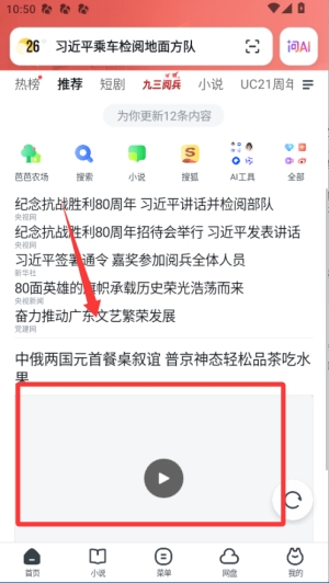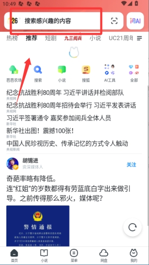 1、打开uc12306抢票专家手机版,在顶部搜索框输入想找的书名或影视关键词,享受极速的云端检索体验。