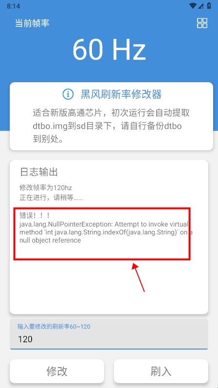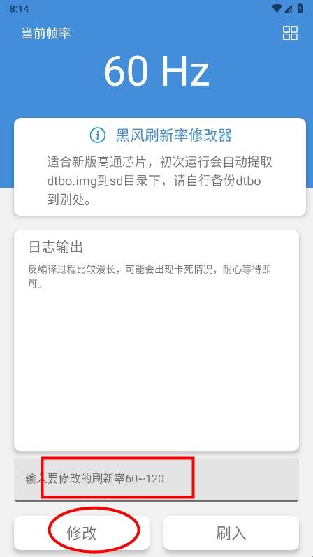 进入app首页,直接输入要修改的刷新率,务必在60-120之间;