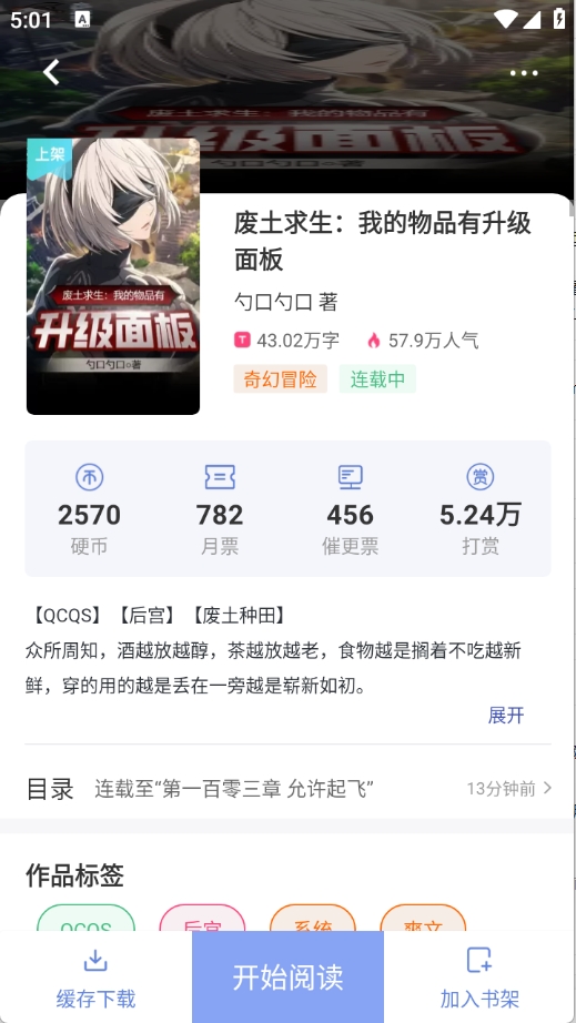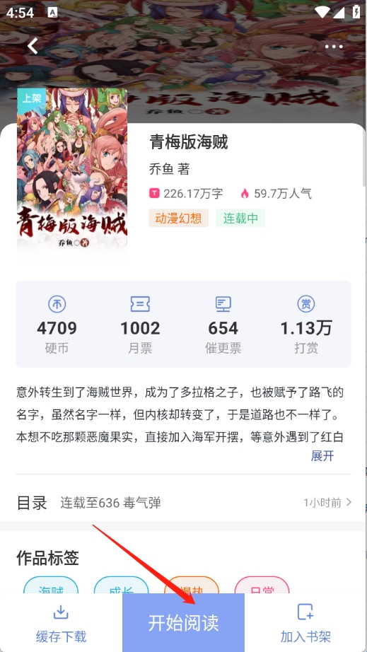 4、点开想看的小说进入到详情页,点击开始阅读。