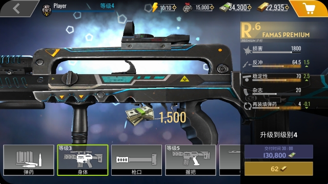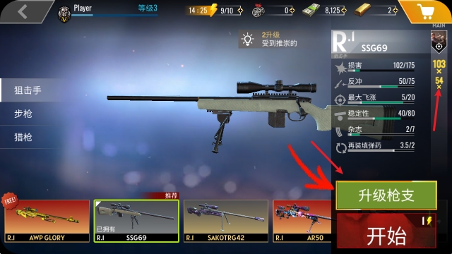 4、除此之外,还可以对已经购买的武器进行升级,提升对应的属性。