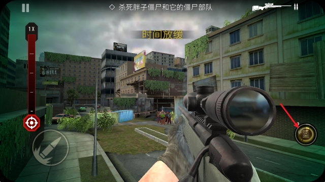 3、瞄准好僵尸之后,点击左下角的子弹即可射击。