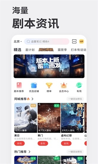 【剧本组局】现有组局加入、选店选本约局、专属组局群聊,波吉更快满足你的玩本欲望,让素未谋面的你们更快成为朋友。
