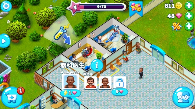 1、在游戏中玩家将要经营一家医院,医院的规模还比较小,玩家需要通过不断的经营扩大规模;