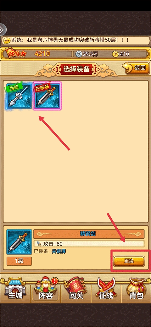 4、最后选择要更换的装备并点击右下角更换即可